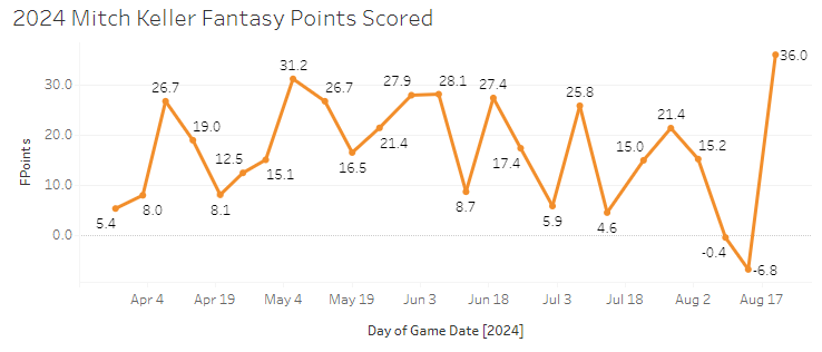 1. Mitch Keller (vs. TEX): 35.95 Points