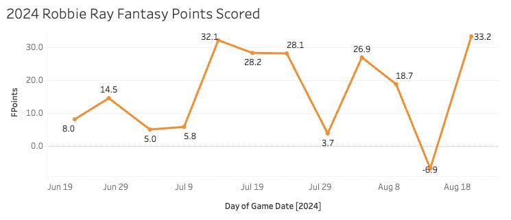 2. Robbie Ray (vs. CWS): 33.21 Points