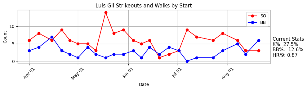13 GS, 4.15 ERA, 1.32 WHIP, 28.3% K%, 7.9% BB%, 20.4% K-BB%