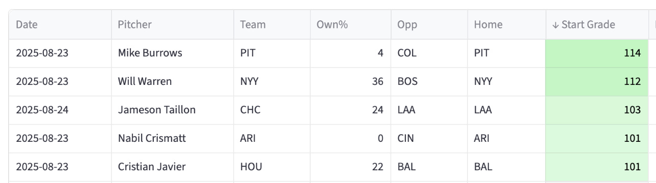 6. Braxton Ashcraft (vs. COL): 26.05 Points