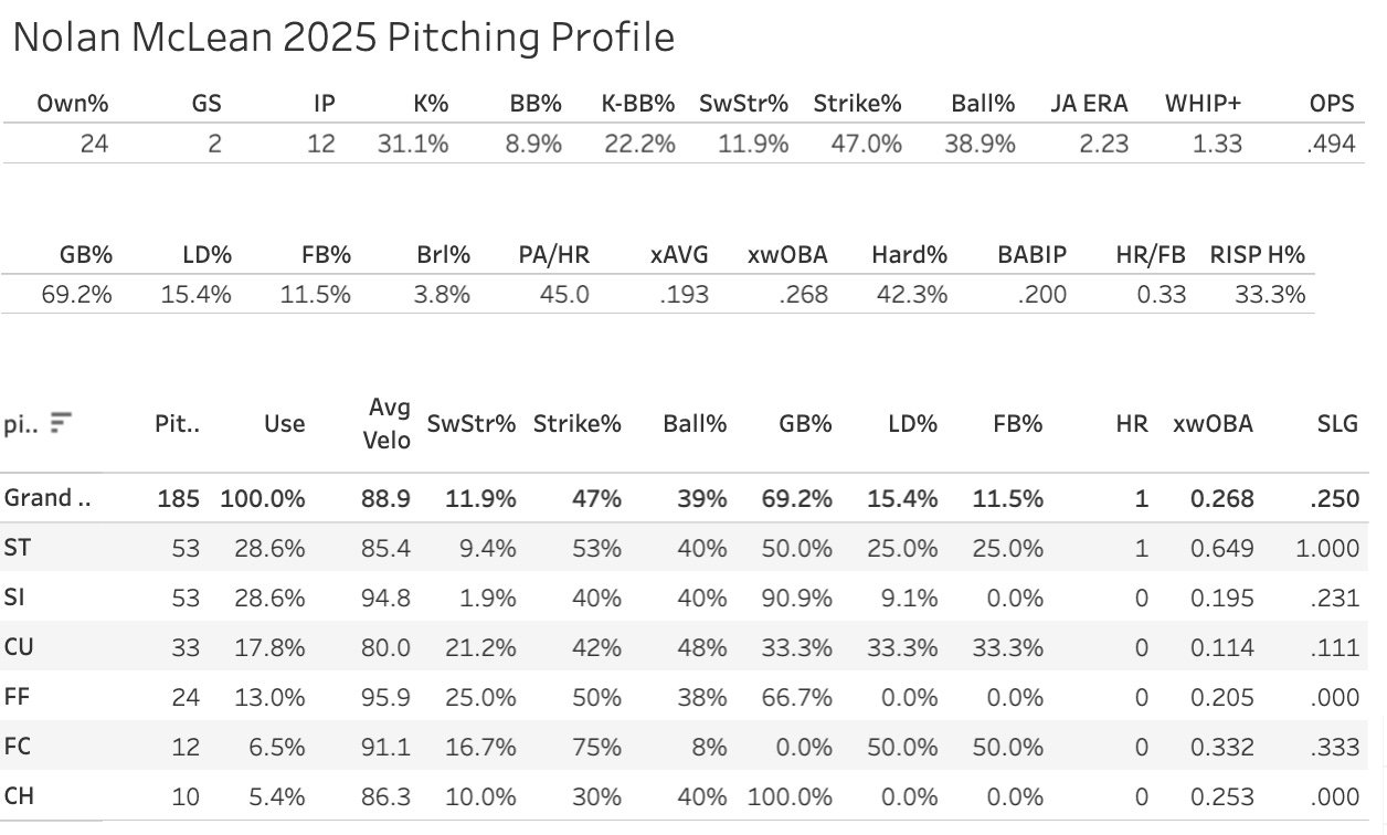 6. Nolan McLean: 94 Pitches, 20 Outs, 4.7 POUT