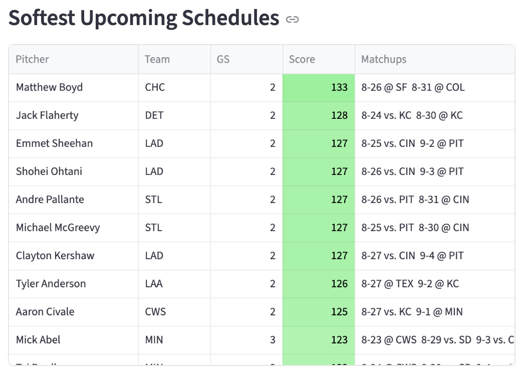 Jackson Wolf (SD): 0 Pitches, 7IP, 2H, 1ER, 8K, 1BB, 33FPts