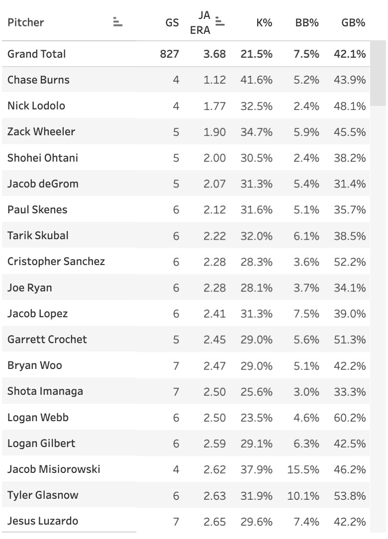 So far, he has a beautiful 31% K% with a 69% GB%. The 11.9% SwStr% is a bit low, but it’s 185 pitches.