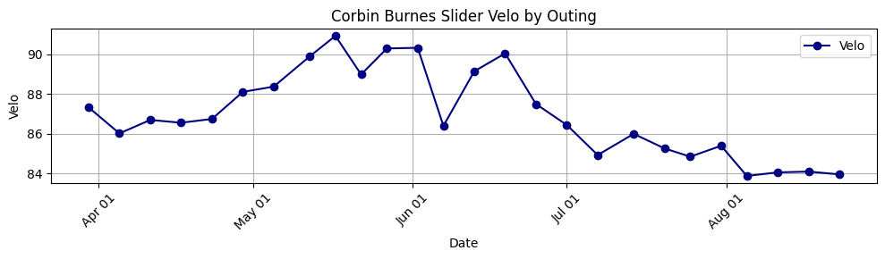 Corbin Burnes's SL velo (12 pitches) DOWN -3.4mph to 84.0