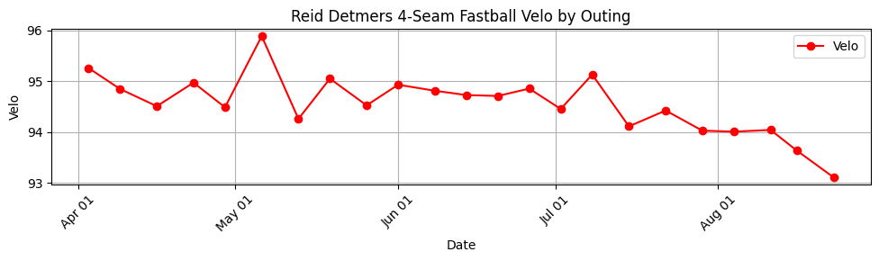 Reid Detmers's FF velo (39 pitches) DOWN -1.5mph to 93.1