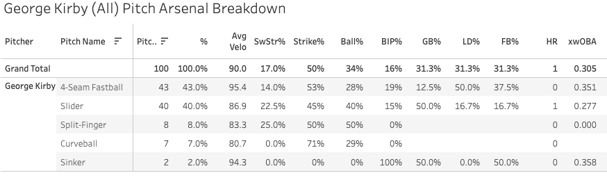 George Kirby went a little weird yesterday throwing a ton of sliders:
