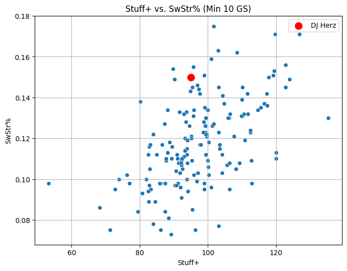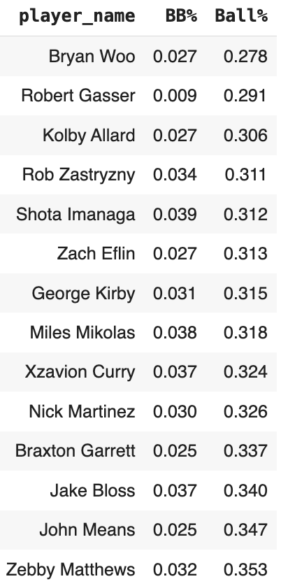 Here, we see an elite SwStr% (15%) with a mediocre Stuff+ (95). That’s not shocking to see; it happens a good amount - but it is less common.