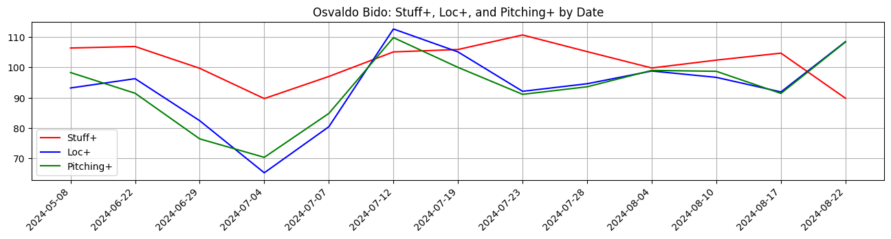 7 IP, 2 H, 1 ER, 10 K, 2 BB, 51.6% Strike%, 34.1% Ball%