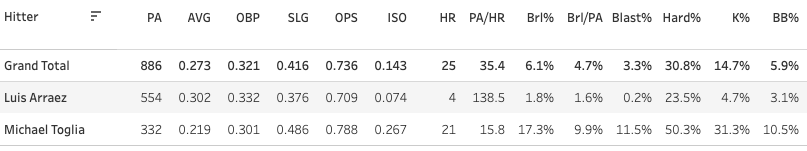 Michael Toglia RF (32.0% Owned): Projected 0.72R 0.22HR 0.72RBI 1.16SO 0.47BB 0.06SB 8.83FPts