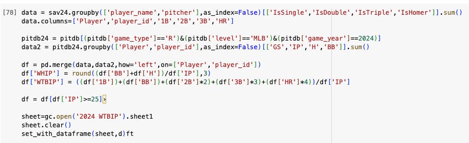Let’s take matters into our own hands and freaking do it. We’ll call it WTBIP (WALKS PLUS TOTAL BASED PER INNING PITHED), which is an awful name - but I’m not an art guy. “Witibip”.