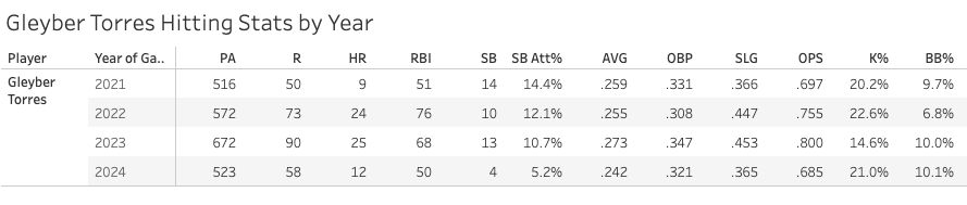 Gleyber Torres - 121 PA, +8.6 Cont%