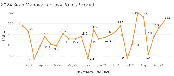 He is just so inconsistent. If you benefited from this start last night, you have set yourself up for him to bomb your team when it matters most in the next couple of weeks. I’m sick of him.