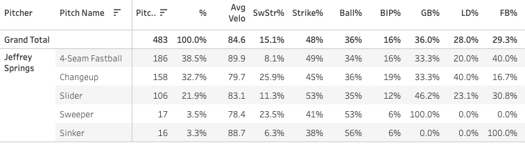 Jeffrey Springs led the day with a 20.3% SwStr%, and took me to a big DFS night.