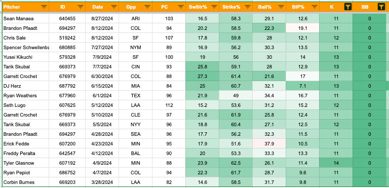 That’s a really good start. There have only been 51 starts this season with no walks and 10+ strikeouts. There have only been 18 with an 11:0 K:BB or better: