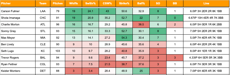 1. Carson Fulmer (LAA): 19 Whiffs (79 Pitches)