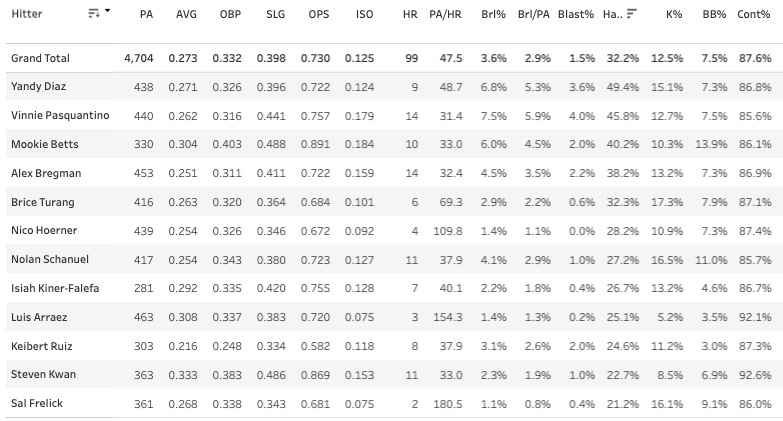 Jose Siri - 42 PA, 23 BIP, 5 Brls, 21.7 Brl%