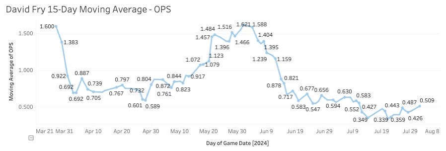 David Fry got back in the home run box score. That was his his first homer since May 31st. That means he’s hit just one homer in his last 148 PAs.
