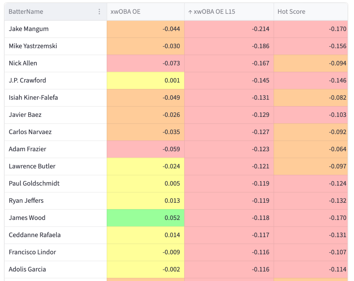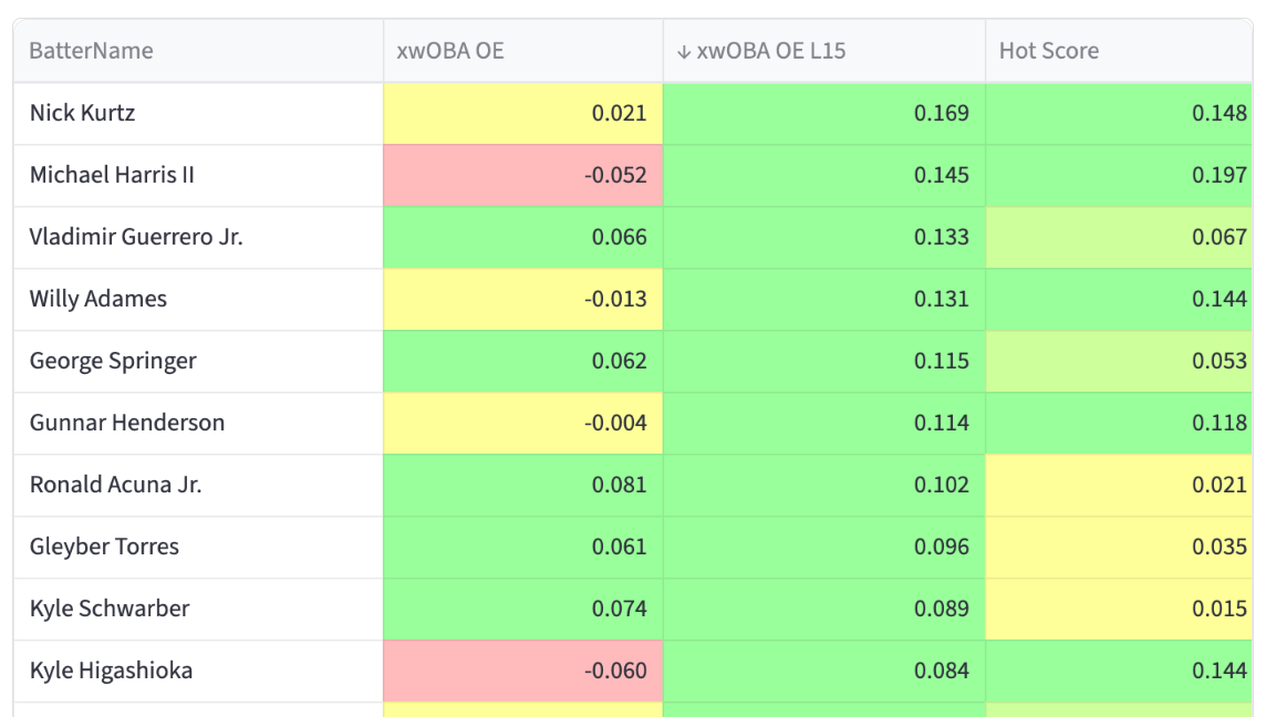 Gunnar Henderson - 0.459 xwOBA, 13.0% Brl%, 78.5% Contact%, 17.6% Chase%, 12.9% K%