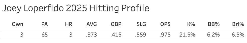 Joey Loperfido - 34 PA, 1.137 OPS
