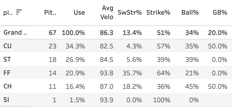 14. Colton Gordon (HOU): 45.7 Strike%, 38.3 Ball%