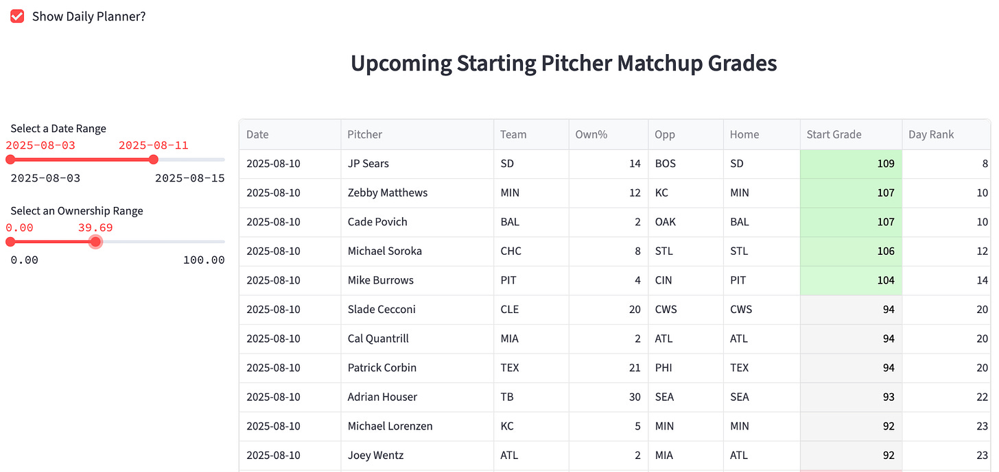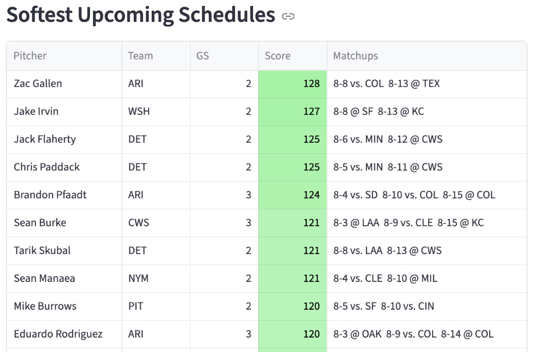 I’ve gotta get going, but here’s some SP planning help ahead of the next fantasy week.