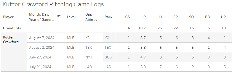 Kutter Crawford is on an incredibly rough stretch. In his last four starts he has a 10.61 ERA, a 1.66 WHIP, a 17.0% K%, and he’s allowed 13 homers.