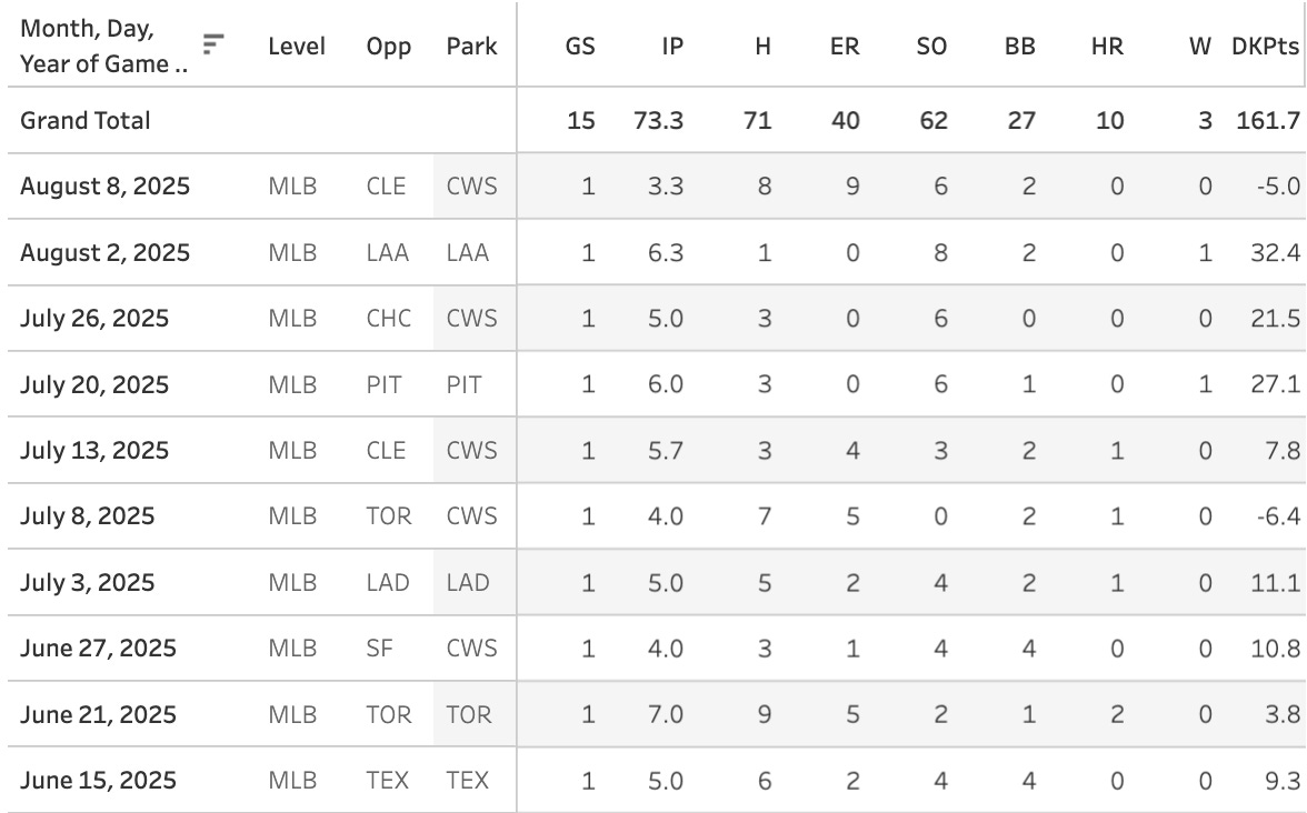 Aaron Civale was hot before last night’s game. He was near the top of that trending players list, and he had thrown 17.1 scoreless innings with a 20:3 K:BB in his last three starts. But he gave it all back last night. All of it! Here’s his White Sox career thus far: