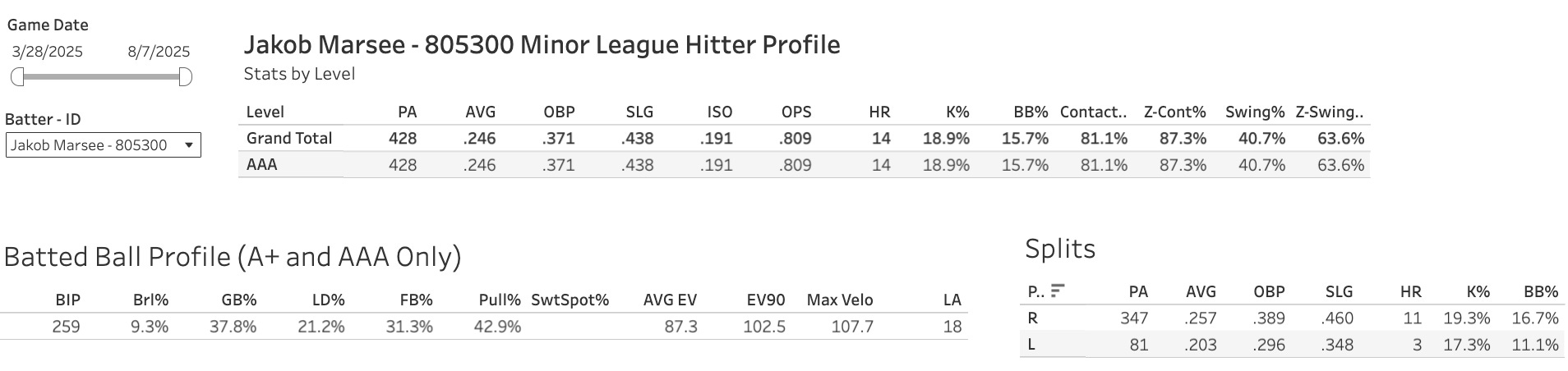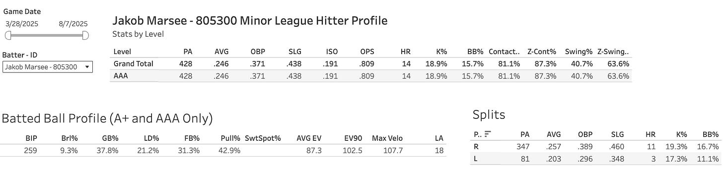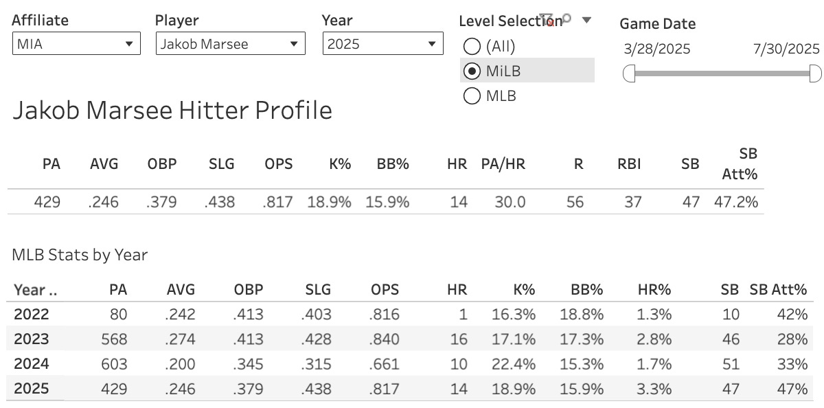 Who is this Jakob Marsee guy? That’s a funny way to spell Jacob! He’s a Marlins player, here are his minor league stats: