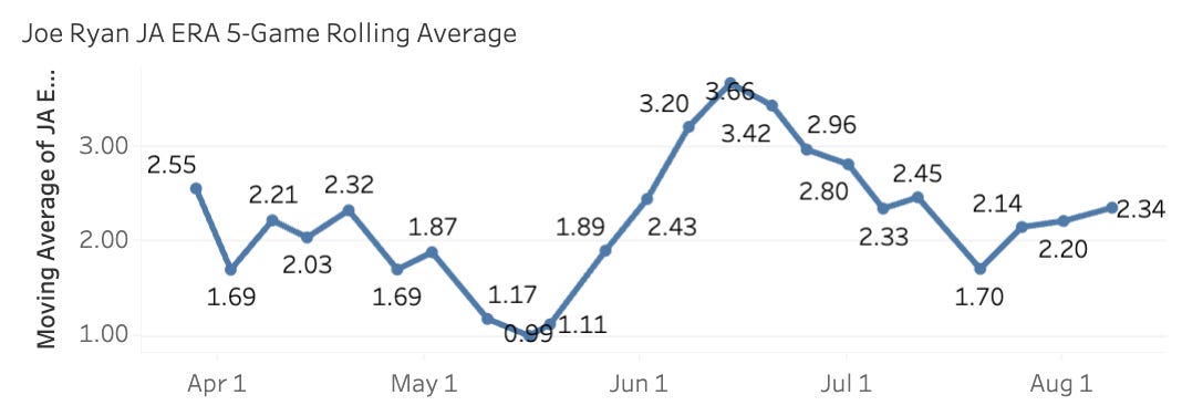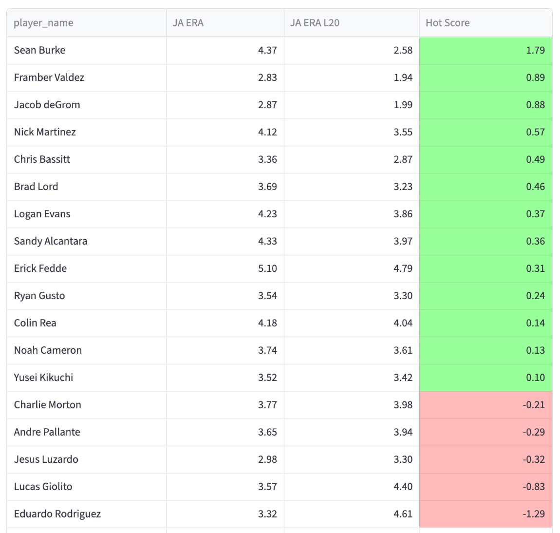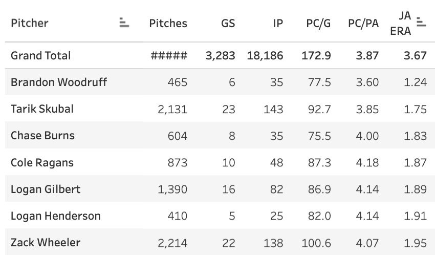 He’s thrown 465 pitches now with a 30.2% K-BB%, and we saw his league-leading JA ERA already in these notes.