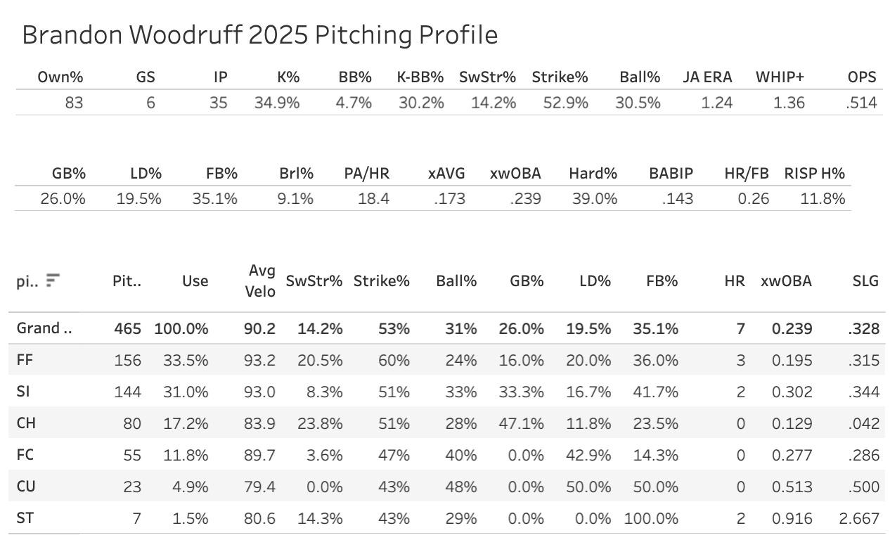 Brandon Woodruff looks like a playoff ace for the Brew Crew, though.