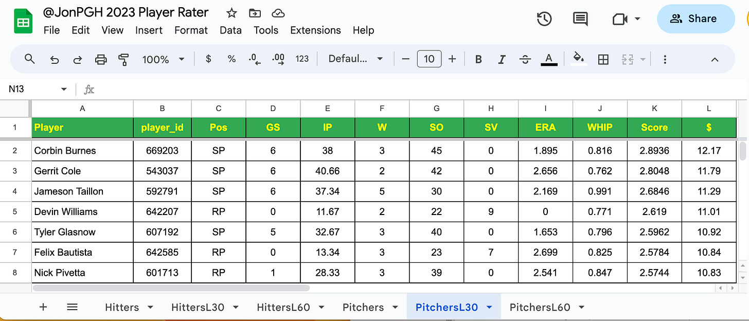 Over the last 30 days, Taillon has a 2.17 ERA, a 0.99 WHP, and five wins in six starts - that puts him only behind Burnes and Cole on the L30 Player Rater. Pretty crazy stuff.