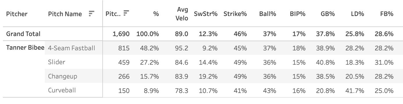 It’s still not a super appealing mix with a mediocre 12.3% SwStr% and 46% Strike%. There really isn’t even a standout pitch, just a decent/good slider+changeup combo. Since the all-star break, the slider has been at a 20.9% SwStr%, and I think he reworked it a bit. He’s throwing it harder now and I believe it moves differently as well - so that’s a good sign, but not something to put a ton of trust in.