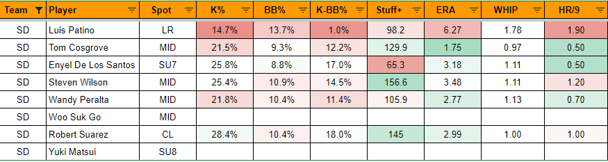 So the back-end of the bullpen is Robert Suarez, these two international signings (Woo Suk Go is the other, he came over here from the Korean League, and yes I will do my best to avoid making a joke about the name there), and then a bunch of pretty meh names.