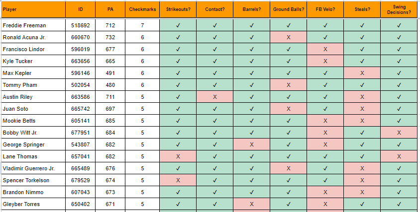 That’s on top of several other similar things that I’ve developed over these last two seasons, and there will be plenty more coming. That’s the kind of stuff I limit to paid subs. Only paid subs get access to the Google sheets, and any part of the notes that includes that stuff goes behind the paywall.