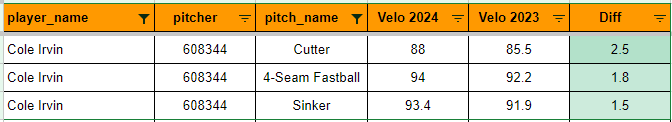 Velo Tracker: This compares each pitcher’s spring velo’s with what they did in 2023