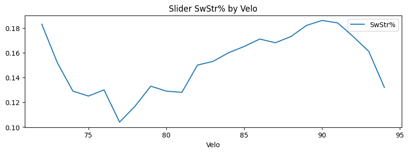 Still an upward trend there as far as getting whiffs goes from the low 80’s tot he mid 90’s, so yeah in general terms it would seem 90 is better than 84 for Megill.