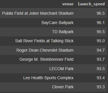 If we zoom in on all batted balls above 80 miles per hour from 2023 and then average the EV’s by park, we find every MLB stadium coming in between 93.0 and 94.0 miles per hour.