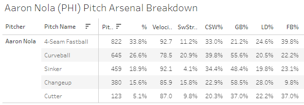 Here is the arsenal breakdown for Nola on the year: