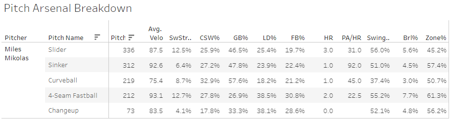 Aaron Ashby - 77 TBF, 38.1% CSW%