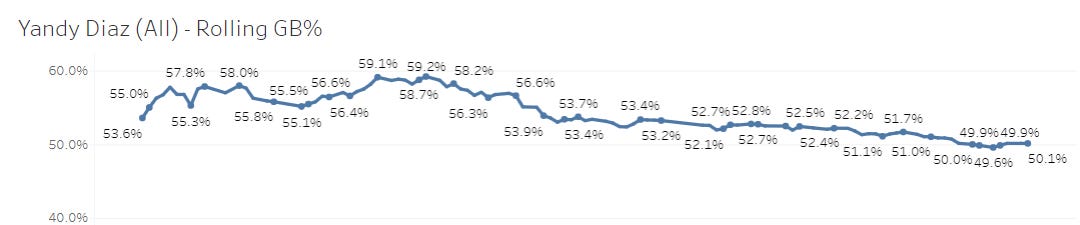 Yandy Diaz is super hot with a .475 xwOBA over the last 15 days. The fewer ground-balls, the better for that absolutely yoked man who makes a bunch of contact