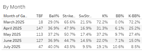 He reduced the slider usage after that June 4th blow-up, and you can’t say it hasn’t worked! The fastball has been good. I will say that I think he’s been lucky to have given up just one homer on it. A 28.6% GB% is really low and it’s not like it’s one of the great heaters we have in the league.
