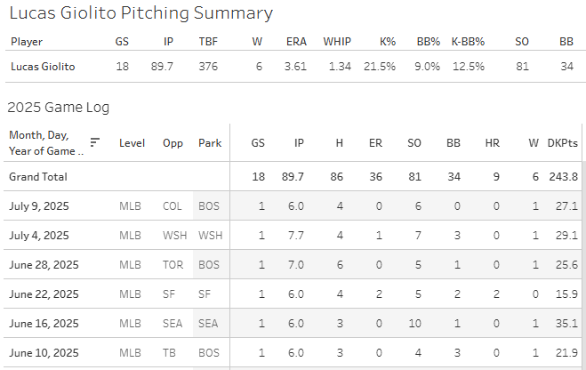 3. Lucas Giolito (vs. COL): 27.1 Points