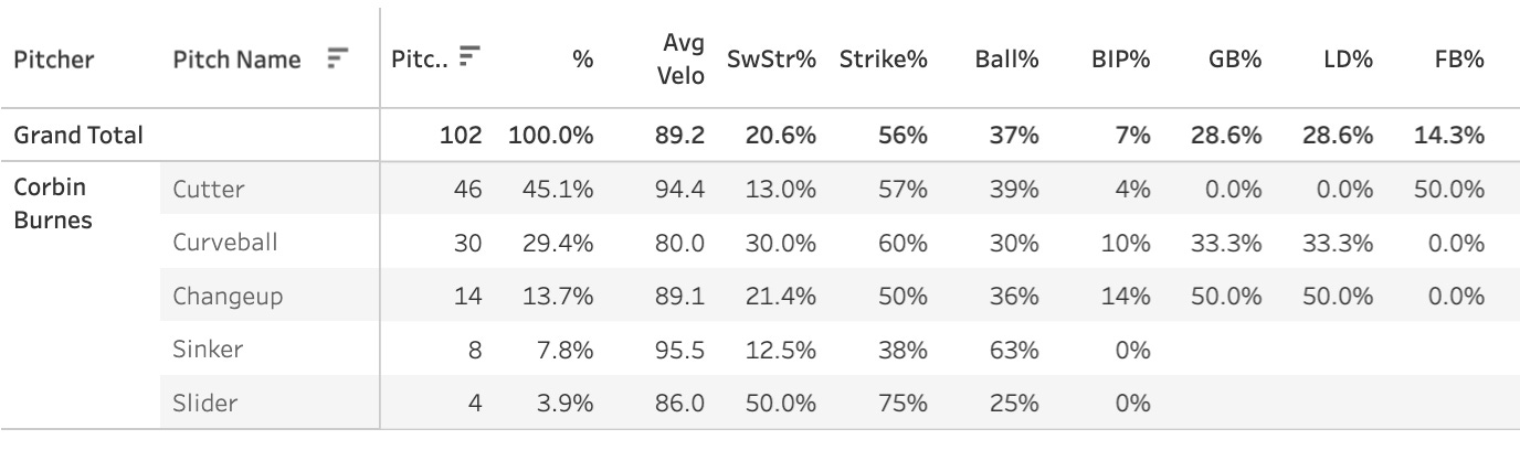 Corbin Burnes's CU usage (29.4%) up 12.6 points