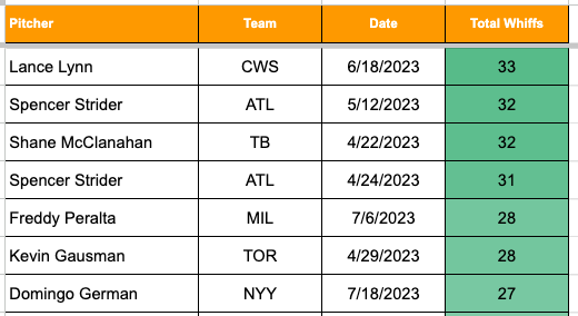 Domingo German was the man of the day with a massive, massive 27 whiffs. That was the seventh-most of any outing this year: