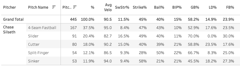 Chase Silseth's SL usage (45.9%) up 27.3 points
