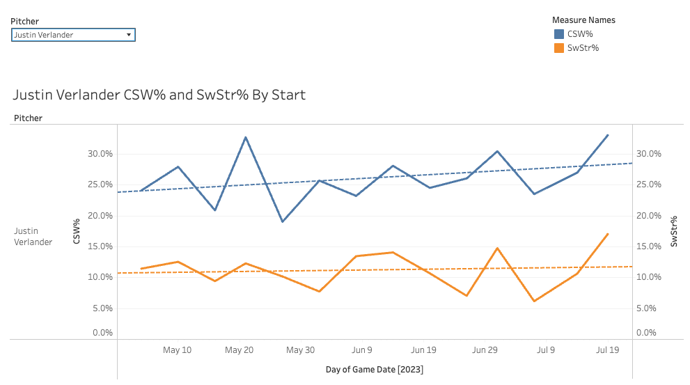 A big 17% SwStr% from Justin Verlander yesterday. That was his best mark of the year, so that’s some good news after his very slow start to the year.