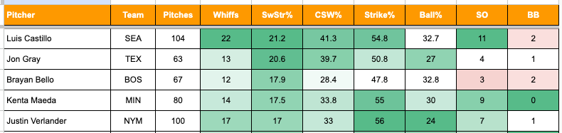 Here’s the top five in SwStr% yesterday from the “Yesterdays SP Data” Google Sheet that updates every morning for paid subs.