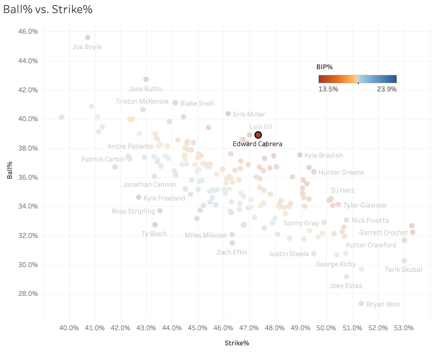 Edward CaBBBBBBBBBBrera! That’s five walks if you’re counting my B’s. Guy is up to a 39% Ball%, and it’s 41% since coming back from his injury.