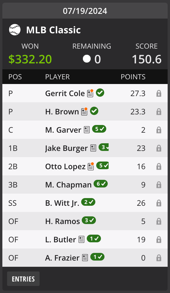 Gerrit Cole is back to form, as we figured yesterday in the slate preview.