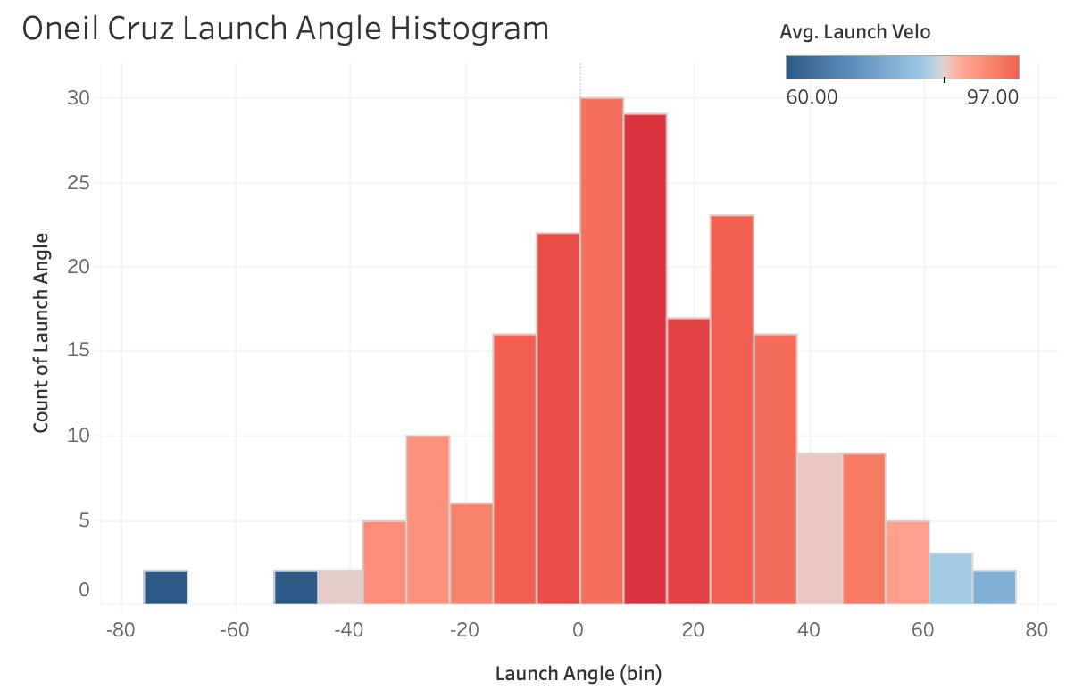 Cruz is now hitting .253/.299/.450 with 14 homers, an 18.5% Brl%, a 32% K%, and a 45% GB%. The launch angles are just a little bit low. Imagine if he was hitting balls this hard with a 40% GB%.